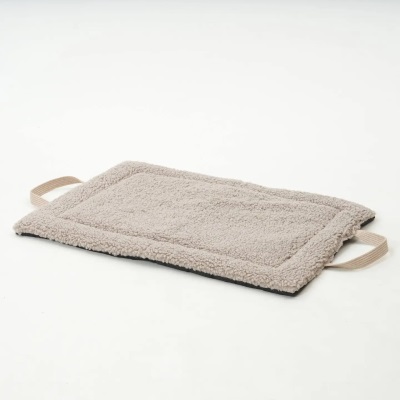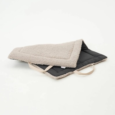 It has a non-slip base is more thickly lined with fleece wadding, making this mat also suitable for outdoor use. Once stitched all around and a thick, cuddly soft outer fabric, similar to bouclé or teddy plush, on the lying surface. Thick, soft and cuddly warm: this is how your dog will also feel comfortable outdoors on the mat.